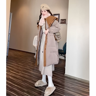 过膝加厚,纯色鸭绒更保暖,洁净羽绒无异味,穿着舒适,蓄热力强,紧紧锁住温度