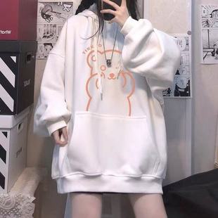大码宽松字母刺绣加绒连帽卫衣加绒加厚女冬