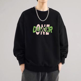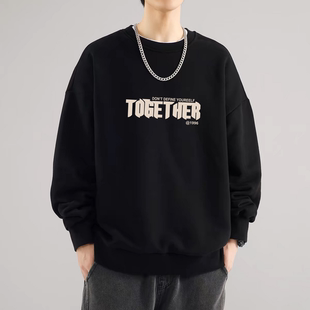 【券后19.8】美式潮牌纯色卫衣男2025秋冬季圆领个性印花男女宽松百搭打底上衣。