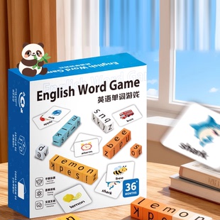 英语单词积木拼图互动游戏玩具
