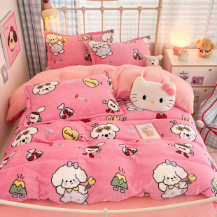 A类牛奶绒四件套大版卡通加绒加厚