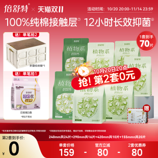 全新倍舒特高端植物系卫生巾,采用高端植物系成分,让姐妹们用起来更加安心,舒心,放心!! 1套:标价159-官方立减40-商品券40=79元 2套:标价159*2-官方立减80-商品券80=159元