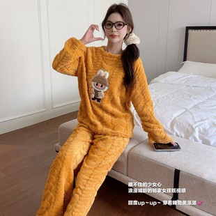 可爱卡通小熊秋冬珊瑚绒睡衣套装